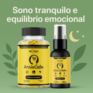 O AnsieCalm é um suplemento alimentar natural desenvolvido para pessoas que sofrem com ansiedade e dificuldade para dormir. A fórmula combina cinco ingredientes com função comprovada no sistema nervoso:
